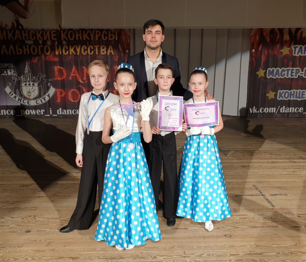 Поздравляем Белякова Владимира, Литвинова Владислава, Баранчикову Анастасию, Наливко Анастасию получивших 1 место в номинации бальный танец с номером «Венский вальс».
